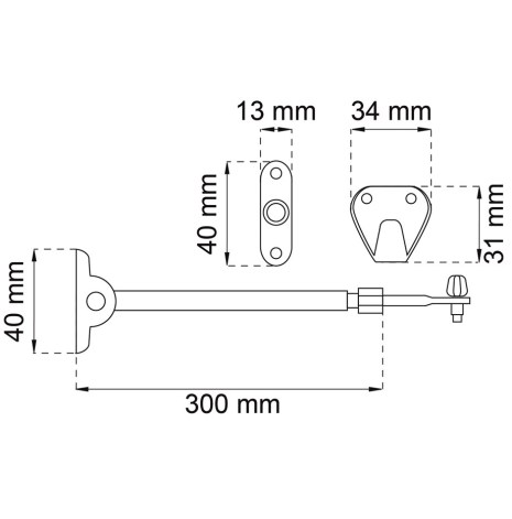 Balkongdörrhållare av aluminium. Ändbeslag av plast. Kan användas för både utåt och inåtgående balkongdörrar. Reglerbar 310-510 mm. Ej barnskyddande.