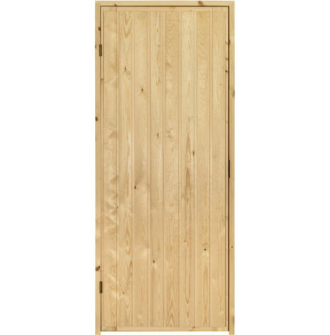 - Båda dörrsidorna har 95 mm obehandlad, kvistfri furupanel.