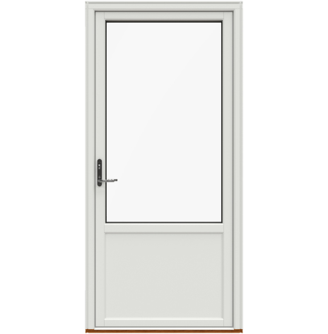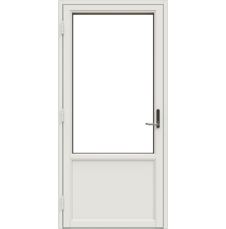 Som standard levereras dörren med handtag på in- och utsida samt låsvred invändigt. Vill du välja ett annat handtagspaket hittar du dem under våra tillval. Låsvredet invändigt kan enkelt bytas ut mot en cylinder.
