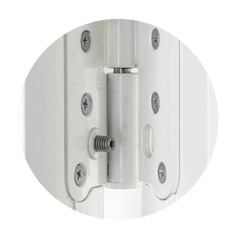 den har även en förhöjd säkerhet tack vare kraftiga gångjärn med bakkantstift och hakkolvsspanjolett.