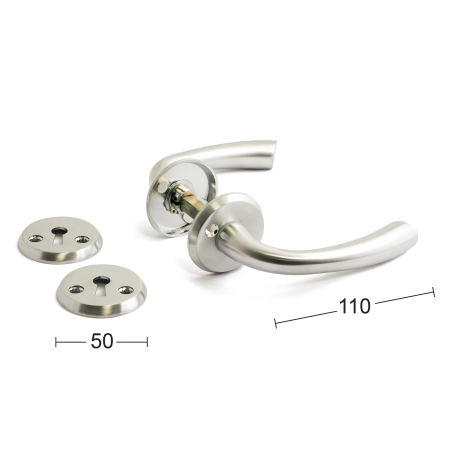 Dörrhandtag och nyckelskylt av zink/zamak. Passar till dörrtjocklek 38-42 mm. Utsprång 53 mm.