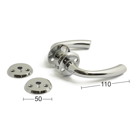 Dörrhandtag och nyckelskylt av zink/zamak. Passar till dörrtjocklek 38-42 mm. Utsprång 53 mm.
