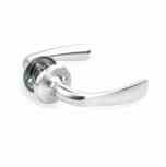 Dörrhandtag av mässing med dubbelverkande returfjäder avsett för ytterdörr med modullåskista. Passar till dörrtjocklek 38-70 mm. Utsprång 62 mm.