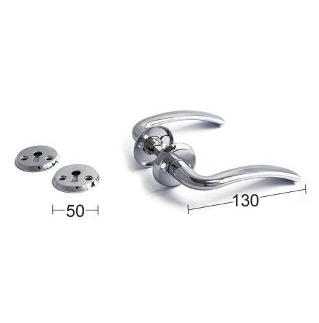 Dörrhandtag och nyckelskylt av zink/zamak. Passar till dörrtjocklek 38-42 mm. Utsprång 60 mm.