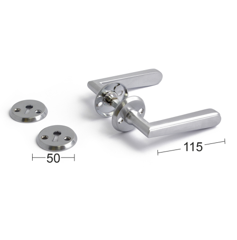 Dörrhandtag och nyckelskylt av zink/zamak. Passar till dörrtjocklek 38-42 mm. Utsprång 52 mm. Finns även som ytterdörrhandtag.