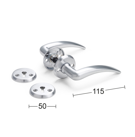 Dörrhandtag och nyckelskylt av zink/zamak. Passar till dörrtjocklek 38-42 mm. Utsprång 50 mm.
