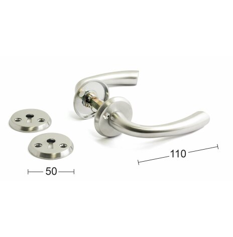Dörrhandtag av zink/zamak. Mjukt avrundat handtag med ytbehandling av borstad krom. Passar till dörrtjocklek 38-42 mm. Utsprång 53 mm. Passar till innerdörr