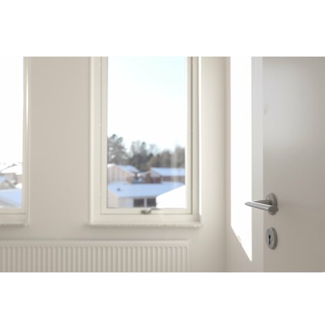 Dörrhandtag och nyckelskylt av aluminium Passar till dörrtjocklek 38-42 mm. Utsprång 50 mm.