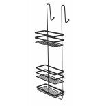 Duschhylla av stål. Hängs enkelt över duschvägg eller kabin. Perfekt när du vill ha rymlig förvaring och inte vill skruva i väggen. Tre hyllplan med två krokar på undre hyllan och två krokar som kan användas till handdukar på utsidan av duschväggen. 3 års rostskyddsgaranti.