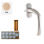 Komplett handtag till Svenska Fönster Rund/Rak Profil, Traryd Optimal Trä. Högerhandtag passar sidohängt, sideswing, överkantshängt och vridfönster.
