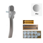 Komplett handtag till Svenska Fönster Rund/Rak Profil, Traryd Optimal Aluminium. Vänsterhandtag passar sidohängt, sideswing, överkantshängt och vridfönster.