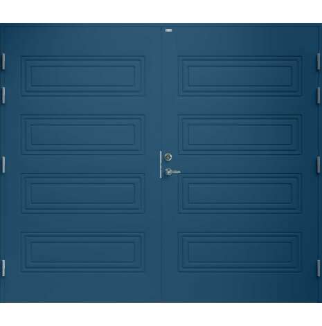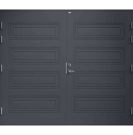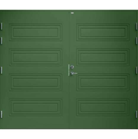 Garagedörr i traditionell stil med speglar i form av spårfräst dekor. Som standard är dörren Vit (NCS S0502-Y).