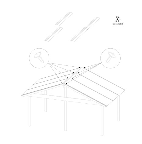 Nockplåt svartlackerad. Längd 2,0 m. Till änden på nockplåten vid sadeltak kan det beställas en täckbricka som avslut i framkant. I utsatta lägen kan du täta mellan beslagsdelarna med silikon och alubutylband*.