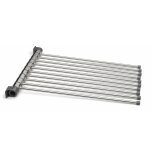 10-armat torkställ av rostfritt stål. Fäste i härdplast, svängbara armar (Ø 10 mm) med plastpropp i ändarna. Utsprång infällt 40 mm, maximalt utsprång 500 mm.