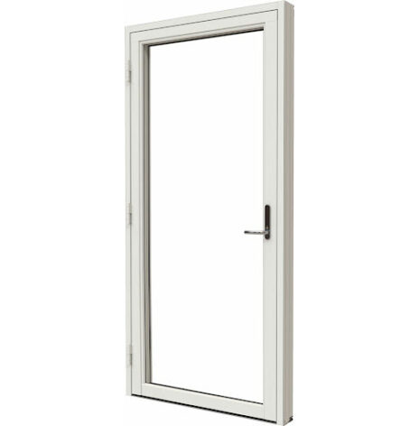 Helglasad fönsterdörr Trä från NorDans Serie NTech. Dörren är vitmålad i NCS S 0502-Y som standard.