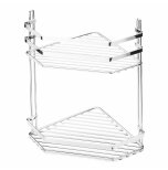 Duschkorg i stål. För montering i hörn. Skruvfastsättning, skruv ingår ej. Med två hyllplan för praktisk förvaring i duschutrymmet. 3 års rostskyddsgaranti.