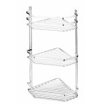 Duschkorg i stål. För montering i hörn. Skruvfastsättning, skruv ingår ej. Med tre hyllplan för praktisk förvaring i duschutrymmet. 3 års rostskyddsgaranti.