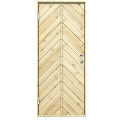 Våra förrådsdörrar har mycket enkel isolering och bör endast användas för ouppvärmda utrymmen med liten eller ingen temperaturskillnad mellan inne och ute. Dörrarna är beklädda med klassisk furu, som måste behandlas före montering. Förrådsdörrarna levereras alltid monterade i karm.