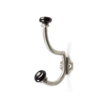 Vintage dubbelkrok av zink/zamak med svarta knoppar av porslin. Utsprång 84 mm.