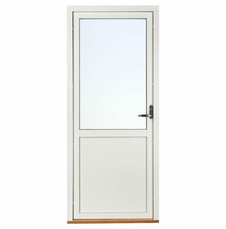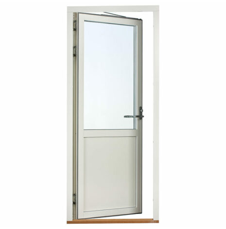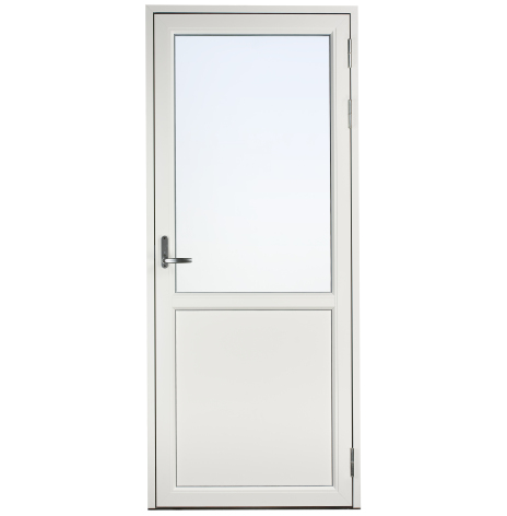 Dessa dörrar har en glasruta upptill med bröstning och isolerad fyllning i underkant. Det gör att glasrutans nedre kant bör linjera med fönster som sitter i anslutning till dörren. Du kan därmed välja om bröstningen ska matcha med fasta eller öppningsbara fönster. Har du t.ex. ett fast fönster med Modulhöjd 13 (=128 cm) brevid dörren väljer du Fast 13 som bröstning.