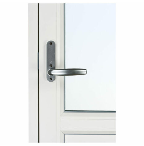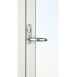 Fönsterdörrarna, som har fallkolvsspanjolett (handtaget fjädrar tillbaka när du släpper det – precis som på en vanlig dörr) och fyrpunktslåsning som försvårar vid inbrottsförsök. Dörren är försedd med vred på insidan och täckbricka på utsida.