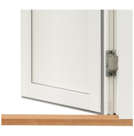 Karmhylsa Adjufix är förmonterad i alla fönsterdörrar, karmskruven ska vara för tungt montage och anpassad för det fästande materialet i väggen. (skruv ingår ej) Dörren är också förberedda för extra förankringsskruvar genom de två övre gångjärnen. För att erhålla en god funktion samt rätt justeringsmöjligheter så skall förankringen göras i fast väggmaterial, och i samband med montaget. Slutfixeringen förhindrar rörelser i karmens yttre del och förebygger framtida justeringsbehov.