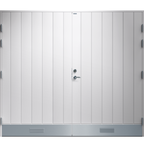 Dekorspårad garagedörr i traditionell stil som finns i flera utföranden. Som standard är dörren Vit (NCS S0502-Y).