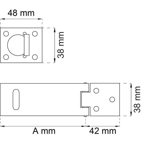 Ledhasp av stål med vertikal ögla. För hänglås med max 9 mm bygel.