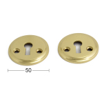 Nyckelskylt av mässing. Levereras med skruv för både genomgående fastsättning samt träskruv. Passar till dörrtjocklek 38-42 mm.