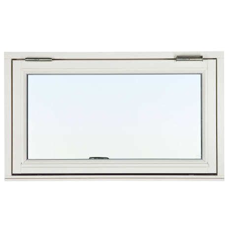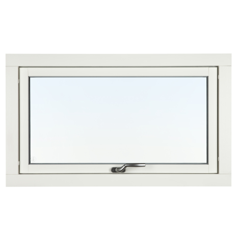 Överkantshängda fönster har gångjärnen högst upp. Det är ett smart val när det är trångt med svängrum, till exempel i en källare. Glaslister och spröjs i vit aluminium på vitmålade produkter, och trä på laserade / övriga kulörer
