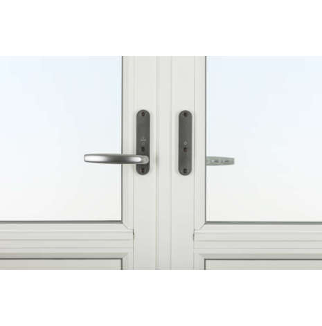 Fönsterdörrarna har en fallkolvsspanjolett som gör att handtaget fjädrar tillbaka när du släpper det – precis som på en vanlig dörr. Säkerheten är mycket hög, men du kan, om du vill, uppgradera till en högre nivå. Glaslister och spröjs i vit aluminium på vitmålade produkter, och trä på laserade / övriga kulörer
