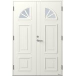 Kvalitetsytterdörr från NorDan - Bor parytterdörr - Månen 820PG med vacker utvändig dekor och integrerad spröjs. Dekor på insidan finns inte som tillval till Månen. Svensktillverkade ytterdörrar av robust konstruktion med dubbla stålplåtar, extra klimatpackning samt kraftig, 56x105 mm, lamell-limmad, fingerskarvad och vakuumimpregnerad karm. Ytterdörren levereras med låskista ASSA 2002, utan cylinder och trycke. Handikappvänlig kantregel för enkel öppning och låsning av det passiva dörrbladet.