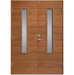 Clara Ek är en parytterdörr i modern stil med två stående klarglas och liggande dekor. Kan också fås som teak, vitmålad eller med valfri kulör. Insidan är slät, men går att få dekorerad som utsidan.