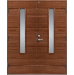 Clara konstteak är en parytterdörr i modern stil med två stående klarglas och liggande dekor. Kan också fås som ek, vitmålad eller med valfri kulör. Insidan är slät, men går att få dekorerad som utsidan.