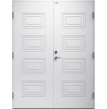Karina tät är en ytterdörr i traditionell stil med speglar i form av spårfräst dekor. Insidan är slät, men går att få dekorerad som utsidan. Dörr och karm levereras vit NCS S 0502-Y som standard.