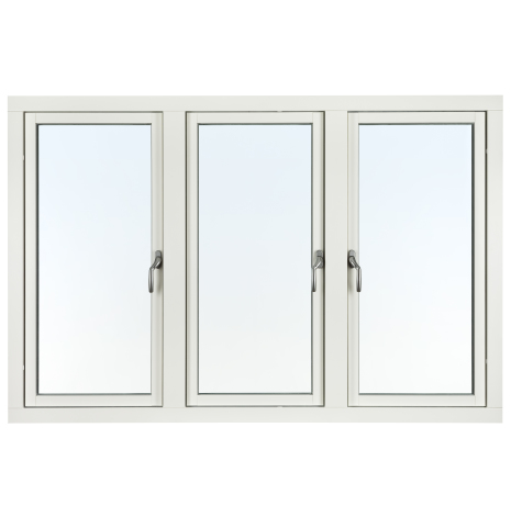 Svenska Fönster Rak profil (fd Traryd Optimal) Sidohängt utåtgående treluftfönster innebär tre separata bågar som går att öppna var för sig i samma karm. Ett 3-glasfönster som passar både äldre och moderna hus. Låsanordning med hög inbrottssäkerhet och Integrerat vädringsbeslag. Fönstret har vitmålade trädelar (NCS S 0502-Y) och utvändig vitlackerad aluminiumbeklädnad Ral 9010 som standard, men kan också fås med ett antal standardkulörer på utsidan utan tilläggskostnad.