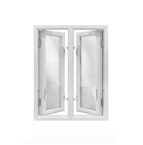 Traditionellt sidohängt utåtgående fönster med gångjärn på sidorna.