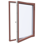 Insida av kvistfri furu med hög densitet, 550kg/m3. Hög möbelfinish utan gula kvistgenomslag. 3 lager vattenbaserad färg med Vit NCS S 0502-Y som standard. Andra RAL eller NCS kulörer eller lasyrer finns som tillval (se kulör). Borstlist mellan karm och båge döljer vridbeslaget och minimerar vattenintrång.