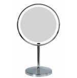 Sminkspegel med bordsstativ. Spegeln har 5 gånger bildförstoring. Spegeldiameter 167 mm, med ram 200 mm. LED-belysning i ramen som lyser upp detaljerna i spegeln. Belysningen drivs med medföljande USB-kabel eller med batterier, ingår ej.