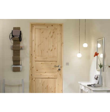 Den täcker funktionsbehovet för en karm. Karmen kommer obehandlad, vitpigmenterad eller i klarlackad furu.