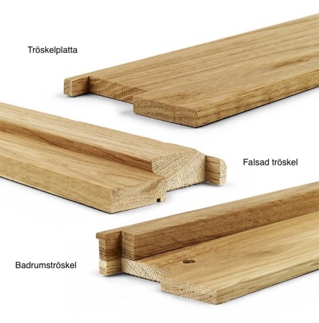Trösklar är standard ek men kan även fås i valnöt, bok, ask och mahogny.