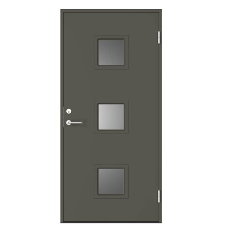Glas: Isolerglas (klarglas) som standard. Frostat som tillval. Glaslister i samma yta som dörren