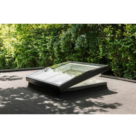 Velux innovativa välvda glas möjliggör en naturlig vattenavrinning, - kan installeras i en takvinkel från 0° till 15°.