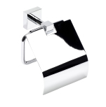 Toalettpappershållare med lock av förkromad mässing. Dold fastsättning. Fästplattan som medföljer är anpassad för montering med skruv eller epoxilim.