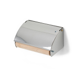 Toalettpappershållare av rostfritt stål med trärulle. C/c för skruvhålen 72 mm.