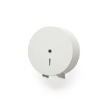 Hållare av vitlackerat stål för toalettpappersrulle med standardmått. För offentliga miljöer. Rund form.