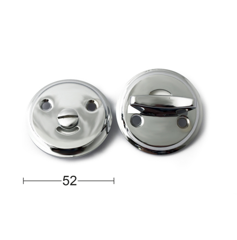 WC-beslag av mässing. Levereras med både skruv för genomgående fastsättning samt träskruv. Passar till dörrtjocklek 38-42 mm.