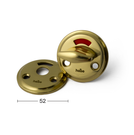 WC-beslag av mässing. Levereras med både skruv för genomgående fastsättning samt träskruv. Passar till dörrtjocklek 38-42 mm.