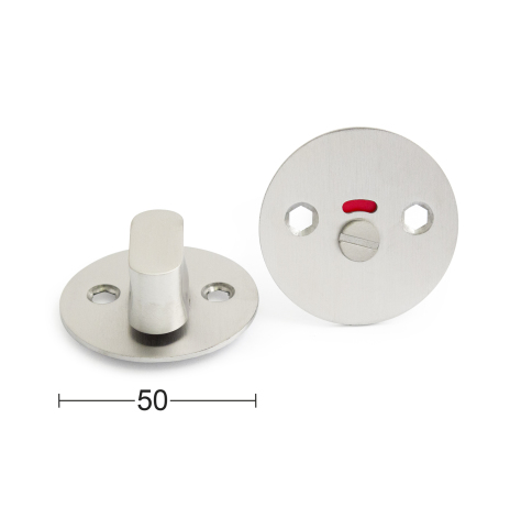 WC-beslag av rostfritt stål. Levereras med skruv för genomgående fastsättning. Passar till dörrtjocklek 38-50 mm.
