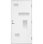 Br.Johansson SY148 är en slät vit ytterdörr med infällt sotat glas.